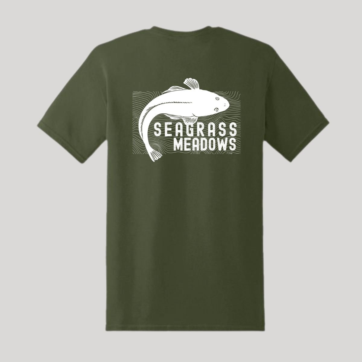 The Seagrass Meadows – Flathead T-Shirt celebrates one of the distinctive fish species found within seagrass meadow habitats. Flathead rely on seagrass meadows for shelter, feeding and camouflage. With their flattened bodies, watchful eyes and excellent camouflage, they are some of the sneakiest locals in the shallows. This design draws inspiration from the underwater ecosystems surrounding Curtis Island, Queensland.